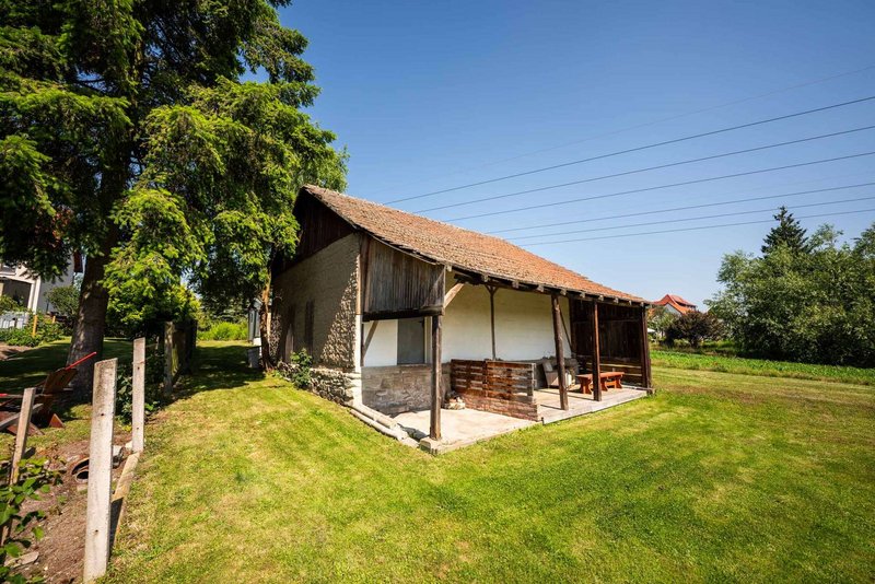Existing development: Front parcel with a charming garden house and a garage for a caravan