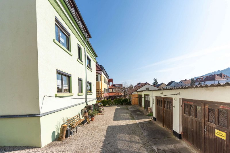 Ein weiteres Highlight ist der zur Wohnung gehörende Grundstücksanteil mit eigener Garage sowie einem Gartenbereich, der sich rückseitig des Gebäudes befindet und zusätzliche Lebensqualität im Grünen bietet.