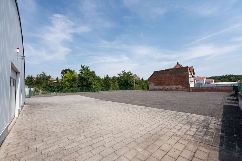 Die Halle verfügt über einen Kraftstromanschluss (32 Ampere) und überzeugt mit einer durchdachten Außenanlage: Vor der Halle erstrecken sich ca. 1.000 m² gepflasterte Fläche, die sich ideal als Park- oder Rangierfläche eignen. Der restliche Teil des Grundstücks ist geschottert und bietet reichlich Platz für zusätzliche Abstellmöglichkeiten oder individuelle Erweiterungen.