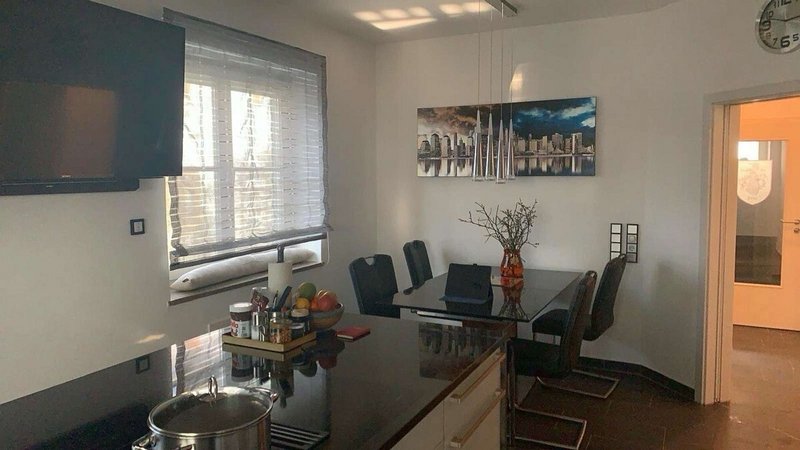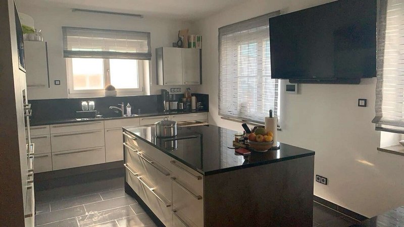 Küche mit Essecke, die zum gemütlichen Beisammensein einlädt