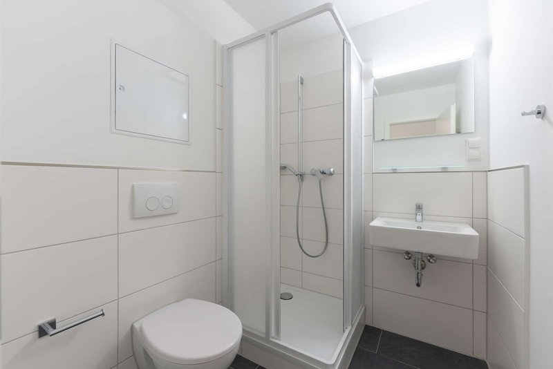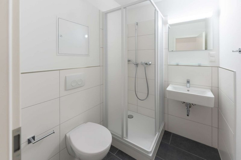 - A smart 1-room apartment is waiting for a new resident. The former hotel has been extensively renovated and features more than two hundred residential units. Each unit includes a living area with a fitted kitchen, a bathroom, and a balcony. The living area is equipped with a plastic floor, and the bathroom is tiled. As almost all apartments are identical in layout, renting online without a viewing is possible. Please contact us for the necessary documents. In the virtual tour, you can view one of our sample apartments. Minor variations may occur.